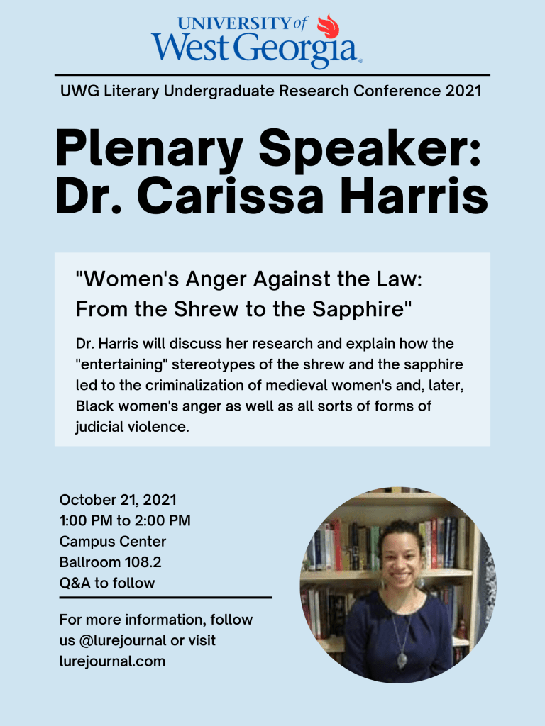 We are delighted that Dr. Carissa Harris from Temple University joined us for the plenary session. Her talk, “Women’s Anger Against the Law: From the Shrew to the Sapphire,” was based on research for her upcoming book The Poetics of Rage: Women’s Anger, Misogyny, and Political Power in Premodern Britain.