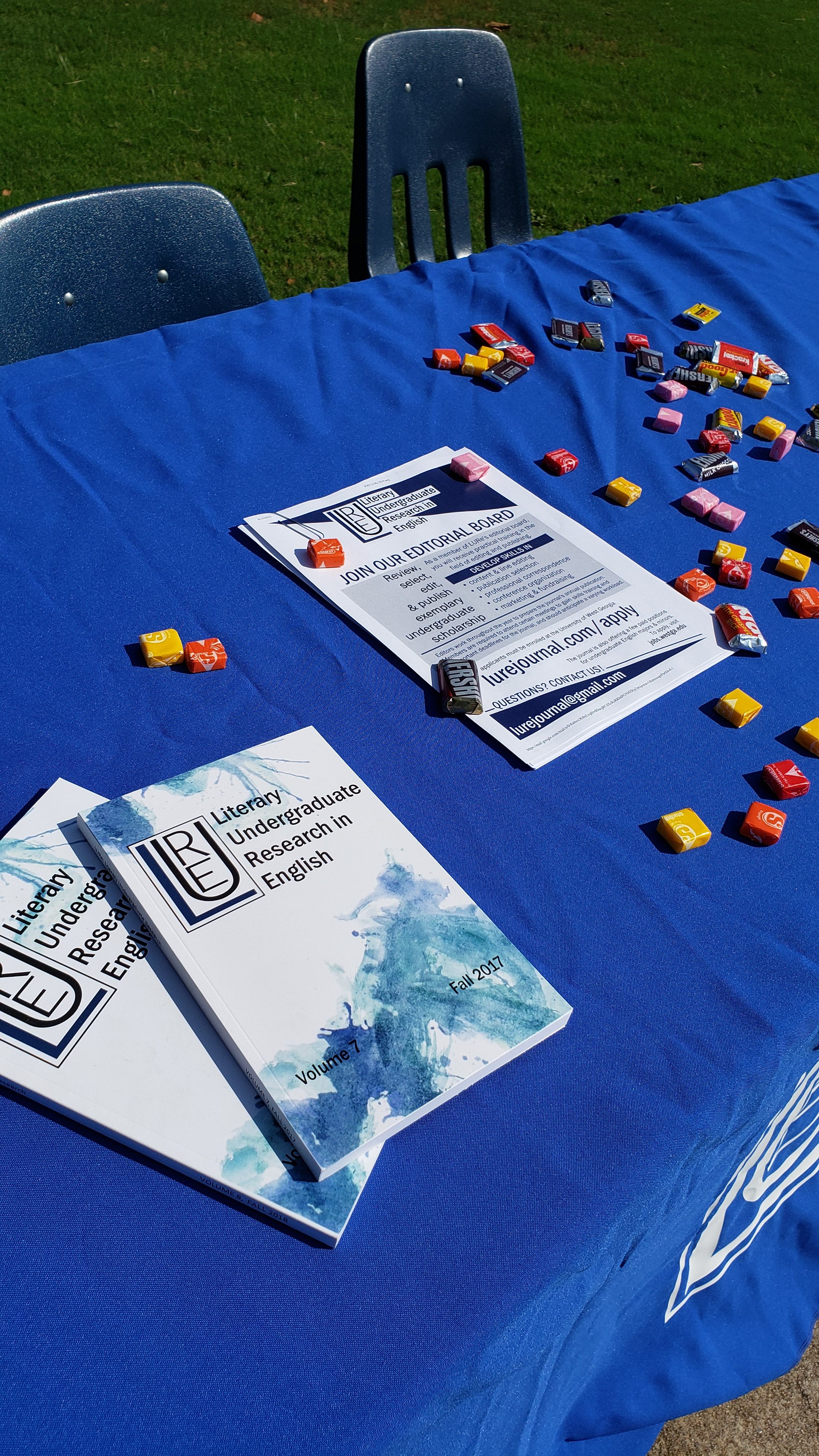 Each student who stopped by the LURe table was informed about our student-run journal, our submissions, our Undergraduate Research Conference, and the opportunity to become an integral part of the journal’s production as a staff editor. We encouraged these students to take home our informational flyers and pieces of candy along with fun LURe stickers to promote future engagement.